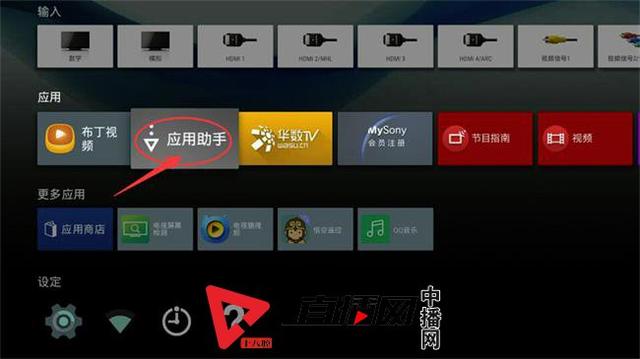 然后将U盘插入索尼X9500G的USB接口上,并且在主页打开【应用助手】,选择USB设备;